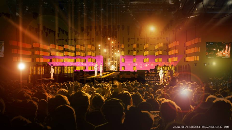 Dizajneri pozornice su Frida Arvidsson i Viktor Brattström, koji su rekli da su želeli da naprave binu koja bi približila publiku, koja se nalazi u dvorani, izvođačima, ali i samom festivalu. Scena je široka 24 metara, dok ide u dubinu 21 metar, što je čini, kako navode iz SVT-a, istorijskom.