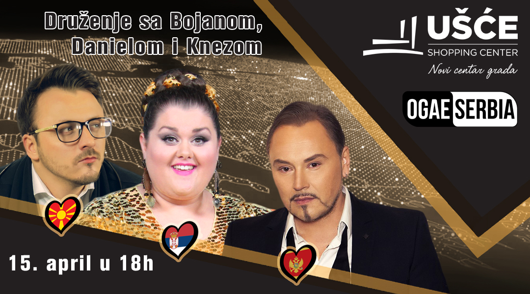 OGAE Srbija i UŠĆE Shopping Center organizuju evrovizijsko druženje u centralnom holu Ušće Shopping Centra u sredu 15. aprila u 18 časova.