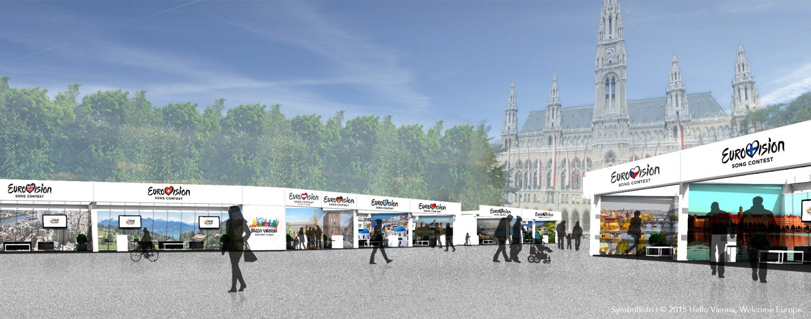 Odbornik Kristian Oksonič, rekao je da je Beč uvek bio mesto okupljanja ljudi iz cele Evrope, pa im je drago što će ovaj praznik zajedništva proslaviti u srcu grada, na Rathausplacu. Beč sebe vidi kao grad tolerancije i prihvatanja, pa moto „Gradimo mostove“ savršeno pristaje gradu domaćinu. Edgar Bom je dodao da je Evrovizijsko selo u svim gradovima domaćinima posebna tema i uverava nas da će Beč imati najveće selo ikada. Zajedno sa partnerima osmislili su sveobuhvatni program i to će biti praznik za sve stanovnike Beča, goste grada, izvođače, delegacije i predstavnike medija. Takođe, osim na trgu u Beču, javno gledanje Evrovizije biće organizovano širom Austrije u saradnji sa regionalnim studijima ORF-a. Za sada je poznato da će javno gledanje biti organizovano u Gornjoj Austriji na sledećim lokacijama – TC PlusCity u Leondingu, Star Movie bioskopu u Regauu i Velsu, Minoritenplatz-u u Velsu, hotelu Courtyard by Marriott u Lincu, zatim u Beču u šoping molu Wien Mitte (Radio Beč) i Pratersauni (FM4), u Forarlbergu u Dornbirnu, u Salcburgu u Europarku (pozorište Oval uz rezervaciju), u Burgenlandu u Ajzenštatu, u Štajerskoj u Bad Miterndorfu, u Donjoj Austriji u Gars am Kampu, dok su pregovori u toku za Korušku i Tirol.