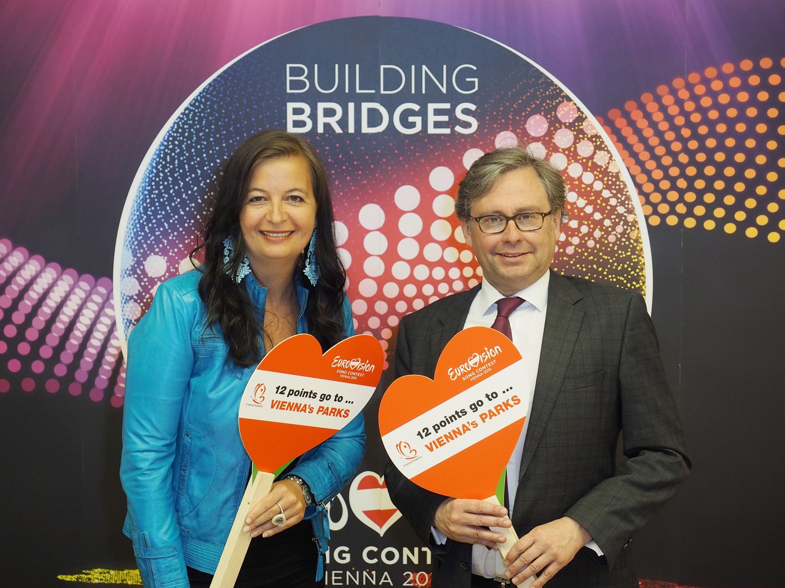 Odbornica u Skupštini grada, Uli Sima, danas je sa generalnim direktorom ORF-a, Aleksandrem Vrabecom, predstavila konkretne mere zaštite životne sredine za Pesmu Evrovizije. Oni su otkrili prve evrovizijske znake u parku kraj Gradske kuće (Rathauspark). Oni će krasiti bečke travnjake i cvetne aleje tokom Pesme Evrovizije.