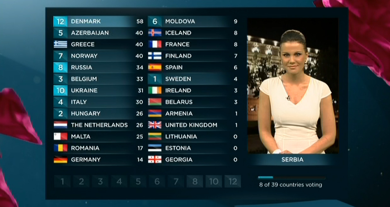 Kao što vam je poznato, prethodnih godina smo često tehnički znali pobednika znatno pre kraja glasanja pošto je prostom računicom bilo jasno da niko ne može da prestigne vodeću pesmu. Sada će se to promeniti i pobednik će biti poznat tek u samoj završnici šoua. Sistem je inspirisan glasanjem na Melodifestivalenu, nacionalnom izboru Švedske za Evrosong. Ovo praktično znači da se može desiti da, na primer, pesma koja je završila na 3. ili 4. mestu kod žirija, na kraju bude pobednik Pesme Evrovizije. Ako se desi da neka zemlja iz tehničkih razloga ne može da isporuči glasove publike, a pošto i publika i žiri dodeljuju poene po sistemu 1, 2, 3, 4, 5, 6, 7, 8, 10 i 12 poena, u tom slučaju glasovi žirija ne mogu se iskoristiti kao bekap rezultat televotinga, pa će se kao rezultat telefonskog glasanja uzeti kombinovani glasovi publike unapred definisane grupe zemalja i na taj način obezbediti da raspodela između glasova publike i žirija ostane 50%:50%. Isto pravilo važiće i u slučaju da izostanu validni glasovi žirija iz neke zemlje. Samo u slučaju jednakog broja poena, koristiće se kombinovani glasovi publike i žirija, a bolje će biti rangirana pesma koja je dobila poene od više zemalja, a ako ni tako nije moguće odrediti poredak, onda se kao i ranije gleda koja pesma je pokupila više 12-ica, ili u krajnjem slučaju koji se gotovo i ne dešava, prednost se daje pesmi koja je ranije izvedena u šouu. Polufinalni rezultati će se dobiti po istoj formuli koja će se koristiti i u velikom finalu. I na kraju, ovakav način prezentacije glasova neće uticati na dužinu trajanja finala i ona će se i dalje kretati oko 3 časa i 30 minuta.