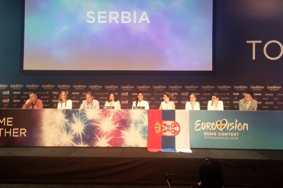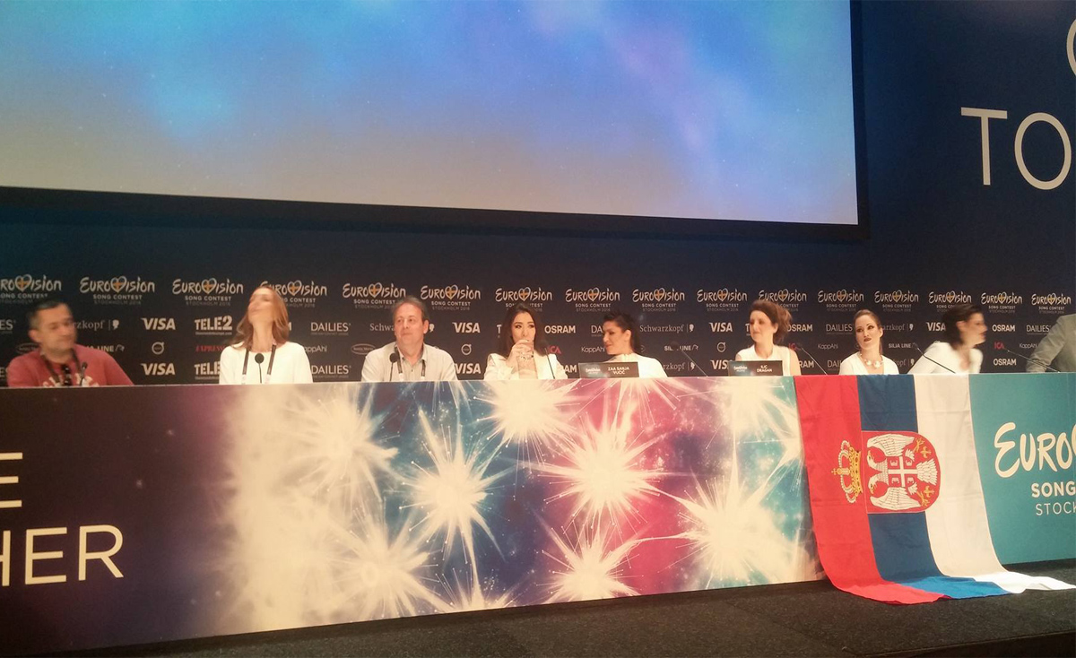 Nakon probe, srpske delegacija je održala i konferenciju za akreditovane medije. Tom prilikom, Sanja je izjavila da je uzbuđena oko nastupa, da je sada sve izgledalo dosta bolje jer kada nosi scenski kostim, može bolje da se izrazi i dodala da može još da poradi na tome da joj emocije budu izražajnije. Ponovo su se dotakli teme pesme koja se bavi problemom nasilja nad ženama, Sanja je rekla da se srećom lično nije se suočila sa takvim problemom, ali da je pesma uči da se bori protiv svih problema na koje može da naiđe. Smatra da je zlostavljanje nešto što se mora zaustaviti i da će ljudi istrajati u toj borbi. Takođe, rekla je da je njena majka njen heroj, najjača osoba koju poznaje i da želi da se ugleda na nju.