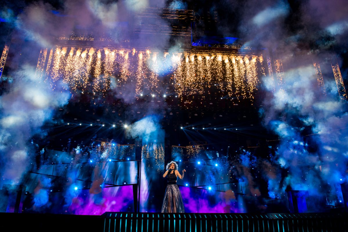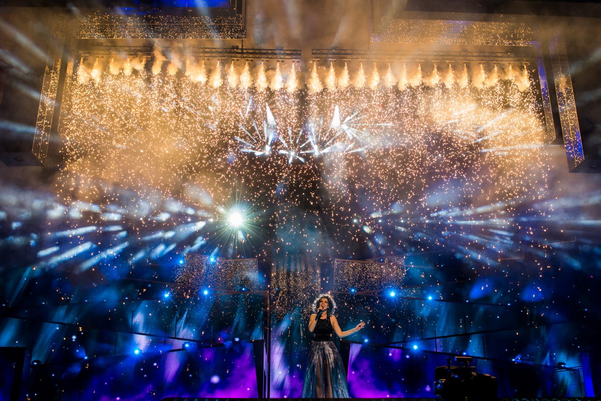Sada se bina „farba“ u plavo, jer nastupa Rajka. Dolazi na scenu bosa u crnoj haljini. Švajcarci su odlučili da u svoj nastup ubace specijalne efekte kako bi popravili utisak o samom nastupu i pesmi. Na početku se pojavljuje dim iza leđa Rajke, da bi kasnije usledila i pirotehnika u obliku vodopada kojeg se neretko sećamo iz pobedničkog nastupa Ell i Niki 2011. godine.