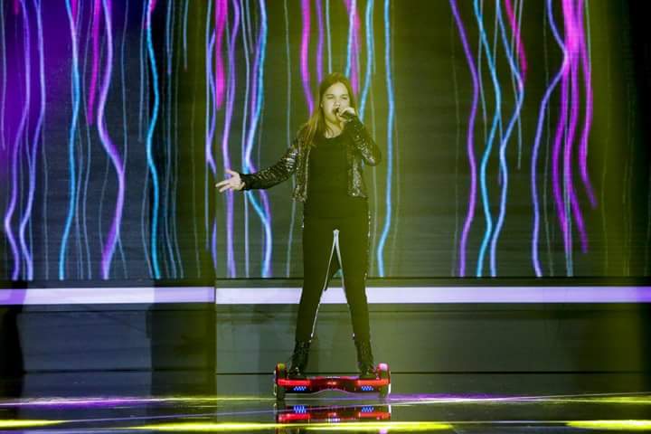 Dunja na scenu stupa vozeći hoverbord, na kome je tokom trajanja većeg dela pesme. Pri kraju Dunja skokm silazi sa hoverbord-a i završava pesmu. Scena je na probi bila u ljubičasto-žutim nijansama. Vokalno Dunja je zaista zvučala odlično.