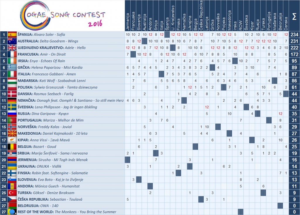Video prilog OGAE Francuska sa rezultatima možete da pogledate OVDE.