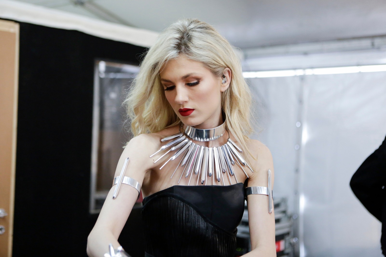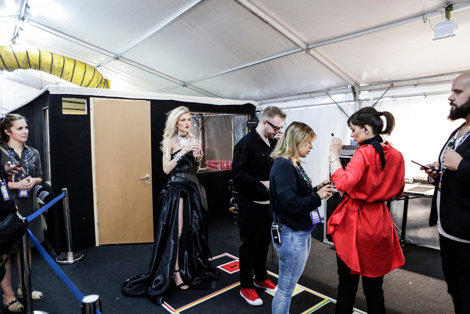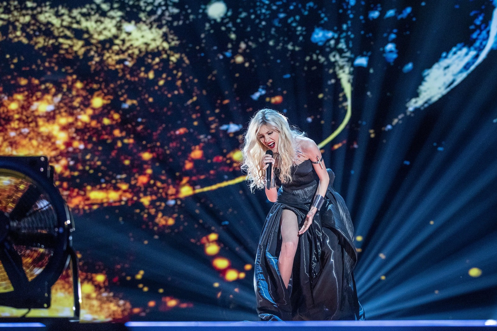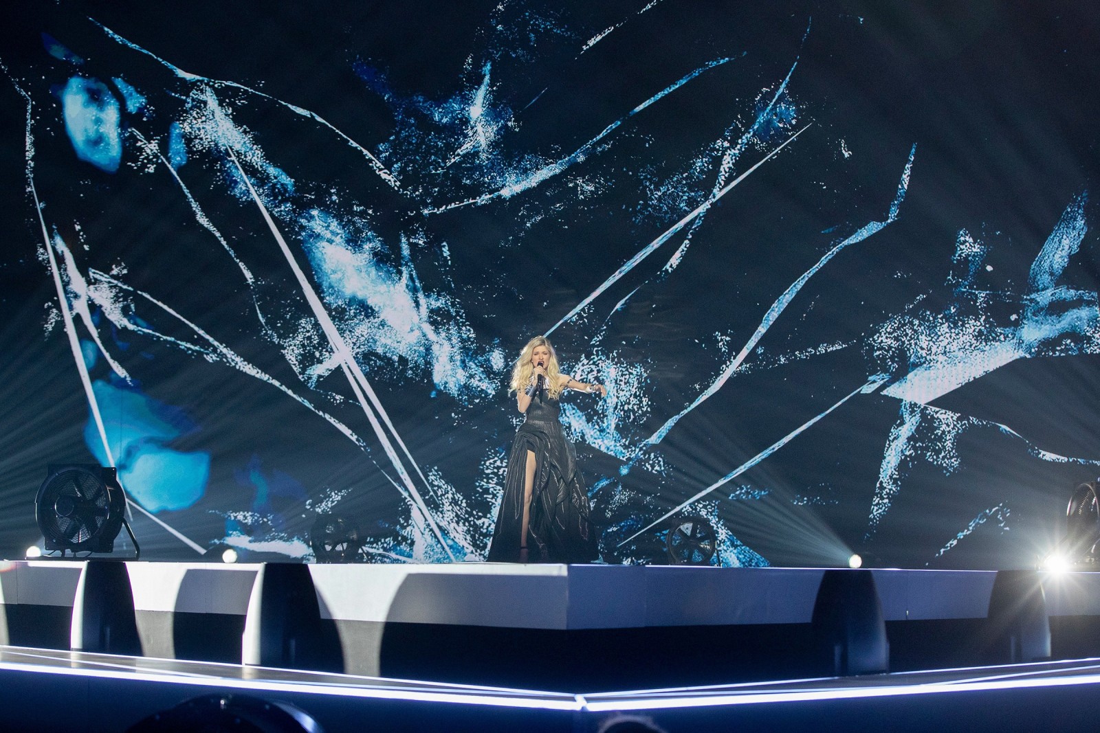 Nevena će na nastupu nositi glamuroznu crnu haljinu bez bretela i srebrni nakit, poput onog koji je nosila i na Beoviziji. Očekivao, vokalno je briljirala, a da pesma zvuči još moćnije, potrudili su se i prateći vokali, Ivana Vladović, Olga Popović, Mladen Lukić i Dušan Alagić, koji će biti iza scene. Scenom dominiraju tamnije boje, crna, plava, sa primesama bele, te efekti ispucalog leda na pozadinskim LED ekranima i vrtloga, kako na ekranu, tako i na podu, u čijem središtu se Nevena nalazi tokom čitavog nastupa. Osim toga, gledaoci će videti i suptilne 3D kružne efekte koji se „penju“ na dnu haljine, a biće i vetra, tj. uključenih ventilatora što nastupu daje dozu mističnosti. Tokom poslednjeg refrena, na LED ekranu se pojavljuje zlatni vrtlog za efektnu završnicu.